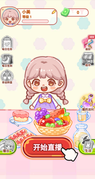 1、进入游戏后,你可以看到少女的吃播日记几个大字,点击开始游戏。