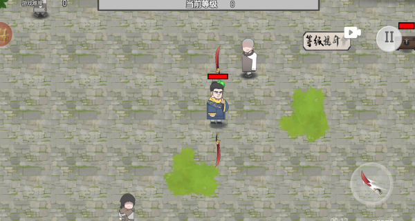 2、刚开始你的等级是0,你要利用虚拟摇杆操控着英雄割草战斗。