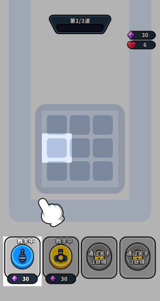1、进入游戏后,你可以根据手指的指示点击炮台放置到指定的位置。