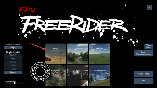 1、进入游戏后选择Desert等场景,根据设备性能调整分辨率与画质选项,确保运行流畅后开始飞行体验。