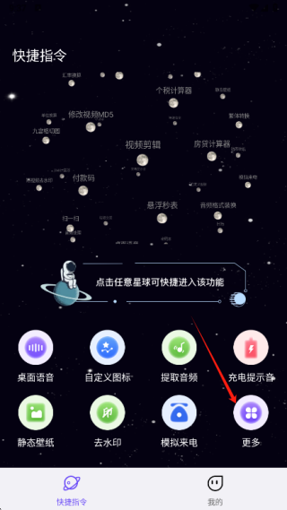 1、在本站下载安装快捷指令软件打开,我们可以在首页点击更多。