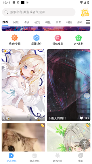 2、在主页浏览不同分类的壁纸资源,包括动态与静态等多种类型。