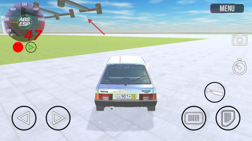 1、我们可以点击MENU按钮,去选择心仪的汽车,选好后,用左右箭头控制方向,油门和刹车按键操控车速,还能切换视角开启驾驶。