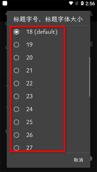 3、在设置页面,点击标题字号、标题字体大小选项,进入字号选择界面。