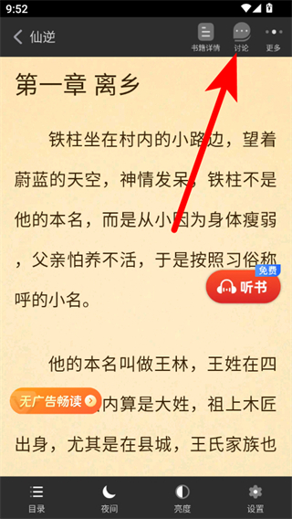 3、在小说阅读界面,点击右上角讨论选项,进入讨论页面。