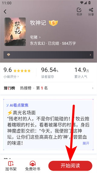 2、在书籍详情页面,点击开始阅读按钮,进入阅读页面。
