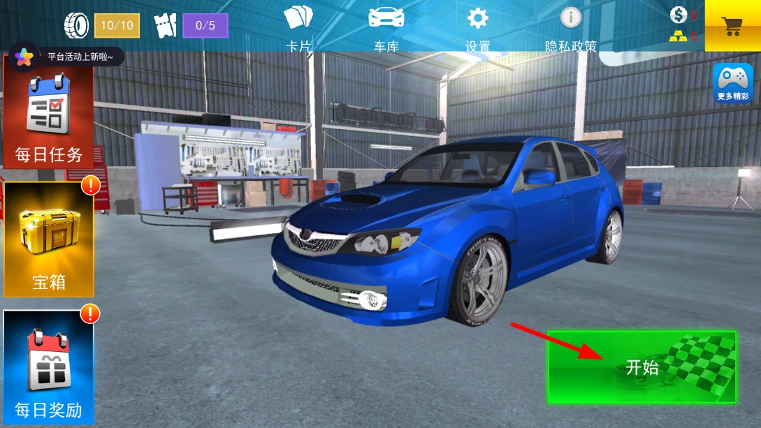 1、在车库界面,点击“开始”按钮,进入【高速驾驶】游戏。