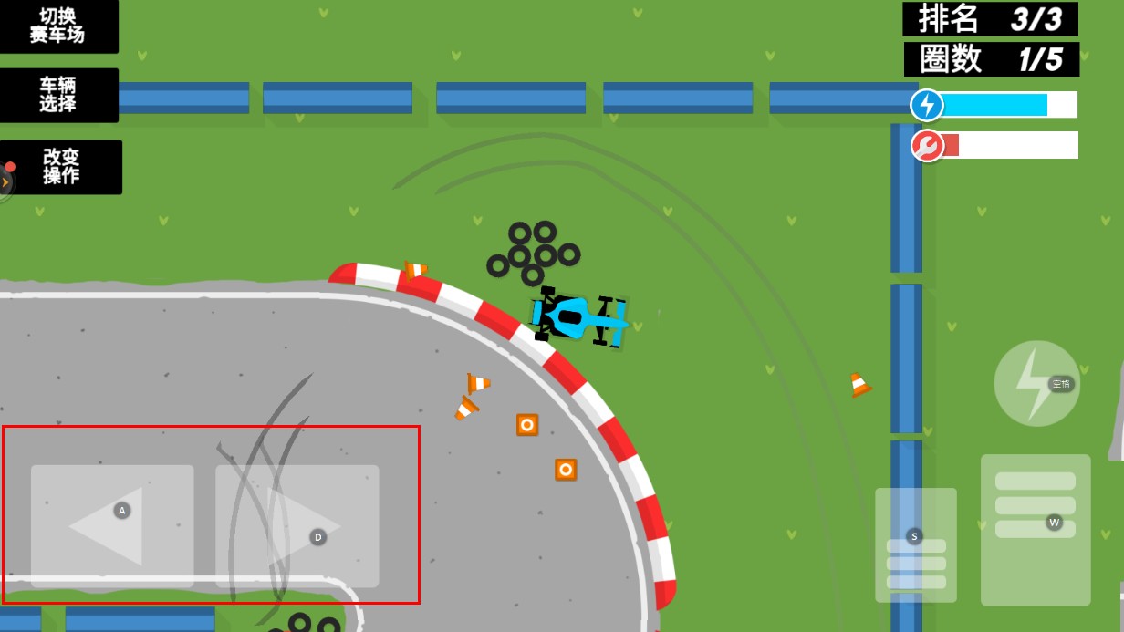 4、通过左侧带有方向标识的按键,控制赛车的转向,灵活调整行驶方向,在赛道上顺利前行。