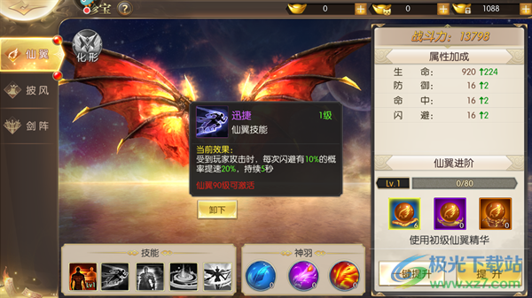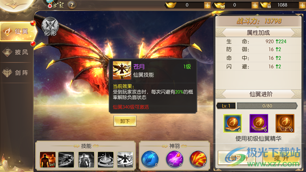 3、掠影:当血量低于20%的时候,受到玩家攻击时,闪避率提高10%。