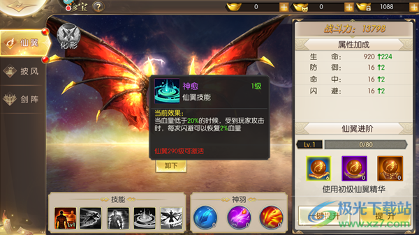 4、神愈:当血量低于20%的时候,受到玩家攻击时,每次闪避可以恢复2%血量。
