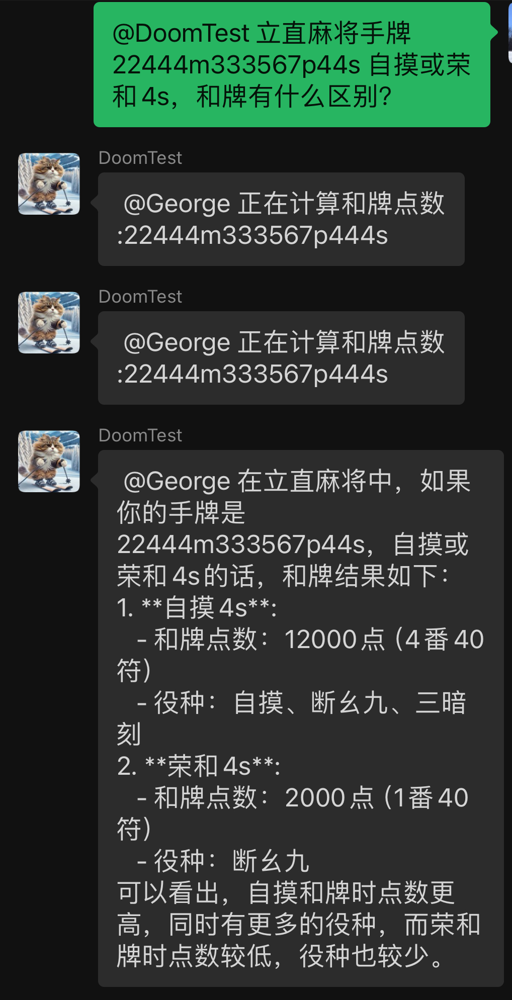 - Mahjong_agari: حساب عدد علامات الترقيم ونقاط البطاقة. احسب المعلومات مثل أنواع الخدمة ، وعدد الأرقام ، والنقاط ، إلخ. استخدم المكتبة: https://github.com/mahjongrepository/mahjong
