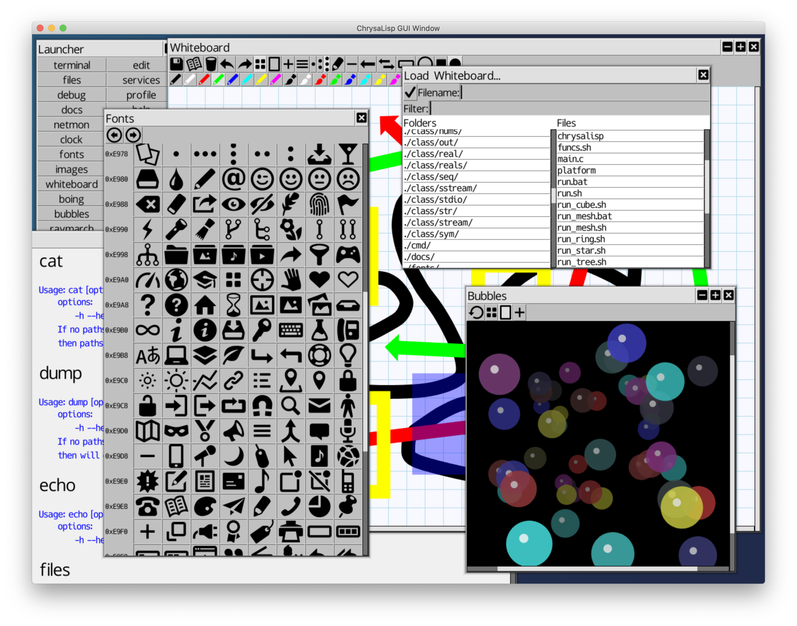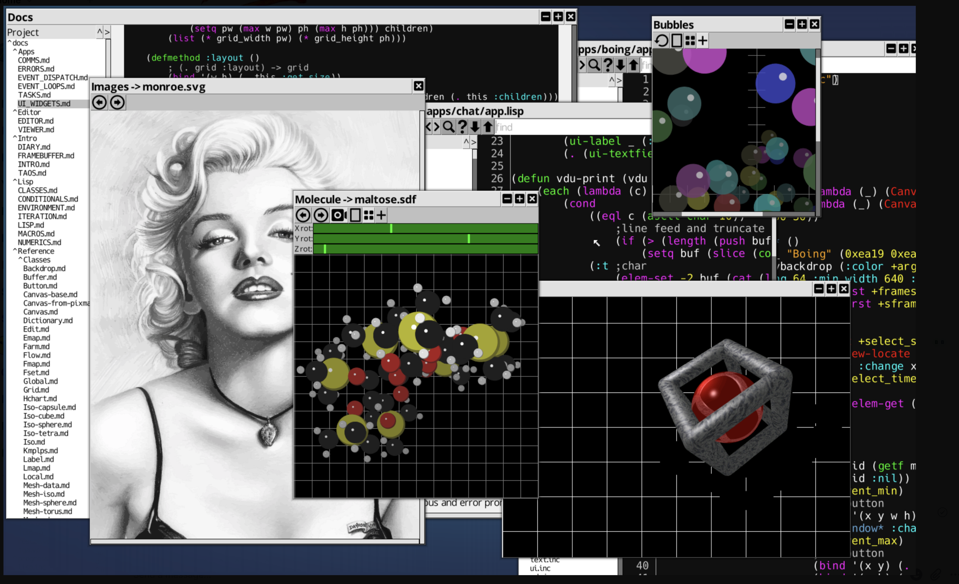 يتم توفير LISP مثل مترجم مشترك. هذا متاح من سطر الأوامر ، عبر الأمر lisp . لإنشاء نوع النظام بأكمله (make) ، يحسب الحد الأدنى لتجميع العمل ، أو (make-all) للقيام بكل شيء بغض النظر ، في موجه الأوامر LISP. يحتوي هذا LISP على إمكانية C-Script 'Snippets' للسماح بخلط تعبيرات C-script المترجمة في رمز الاتصال بالتعيين ورمز الاتصال. يوجد تمريرة أولية تحسين لهذه التعبيرات. تتم كتابة كل من المجمع الافتراضي ومترجم C-script في LISP ، انظر في lib/asm/code.inc ، lib/asm/xxx.inc ، lib/asm/func.inc ، lib/trans/x86_64.inc ، lib/trans/arm64.inc و lib/asm/vp . يتم إنشاء بعض من Primitives Lisp عبر برنامج نصي تم تشغيل كل مثيل من فئة LISP على البناء ، انظر Class/Lisp/Root.inc للحصول على التفاصيل. يتم إنشاء التجميع وجعل البيئة ، إلى جانب جميع الأوامر المترجمة والعمل عبر أداة سطر الأوامر LISP في lib/asm/asm.inc ، مرة أخرى يتم تشغيل هذا التلقائي لكل مثيل من أمر lisp الذي يتم تشغيله من المحطة. يمكنك تمديد هذا بأي عدد من الملفات الإضافية ، فقط ضعها بعد أمر LISP وسيتم تنفيذها بعد ملف LIB/ASM/ASMINC وقبل معالجة stdin.