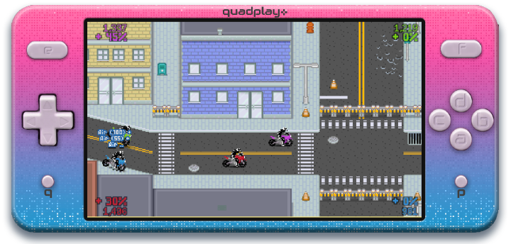 Quadplay✜ هي وحدة تحكم خيالية من قبل Casualeffects لإنشاء وتشغيل ألعاب الفيديو على الطراز الرجعية على أي جهاز.