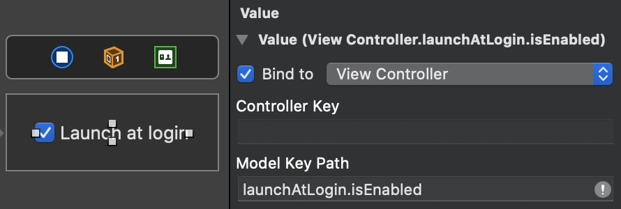 ربط عنصر التحكم إلى خاصية LaunchAtLogin.kvo المكشوفة: