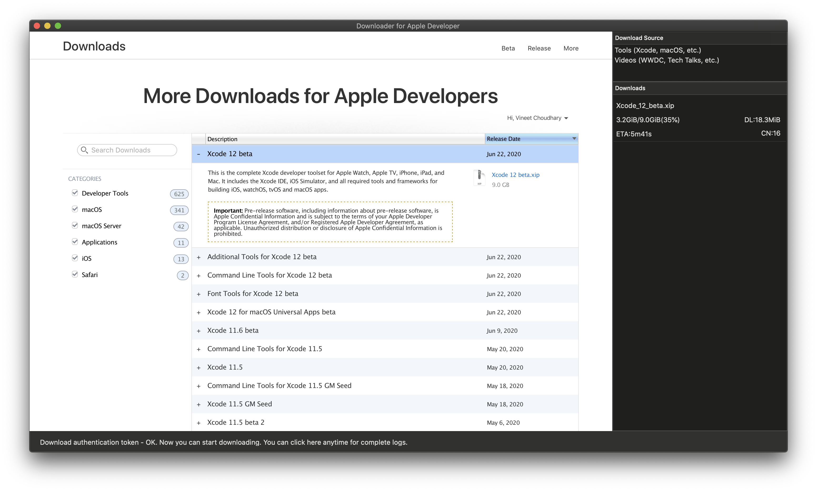 | 2. | بعد تسجيل الدخول ، سترى صفحة تنزيل مطور Apple. |