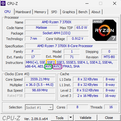 تحقق من تعليمات وحدة المعالجة المركزية المدعومة مع CPU-Z