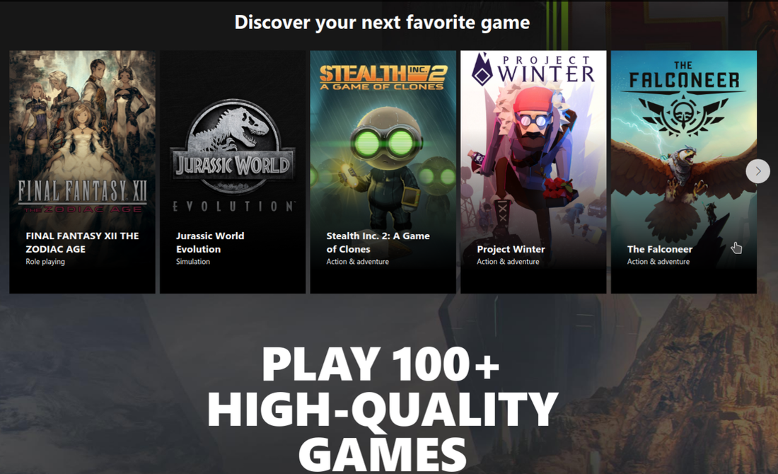 Xbox Project Xcloud هي تقنية Microsoft المستندة إلى مجموعة Xbox التي تستند إلى مجموعة النظراء (حاليًا في بيتا) . لعب ألعابًا مثل Forza Horizon 4 ، Halo 5: Guardians ، Gears of War 4 ، Sea of Thieves ، Cuphead ، Red Dead Redemption 2 ، و 100+ ألعاب أخرى على جهازك المحمول أو متصفح الويب Chrome . يتطلب Project Xcloud من Microsoft Xbox Project Xcloud اشتراكًا Ultimate في لعبة Xbox.