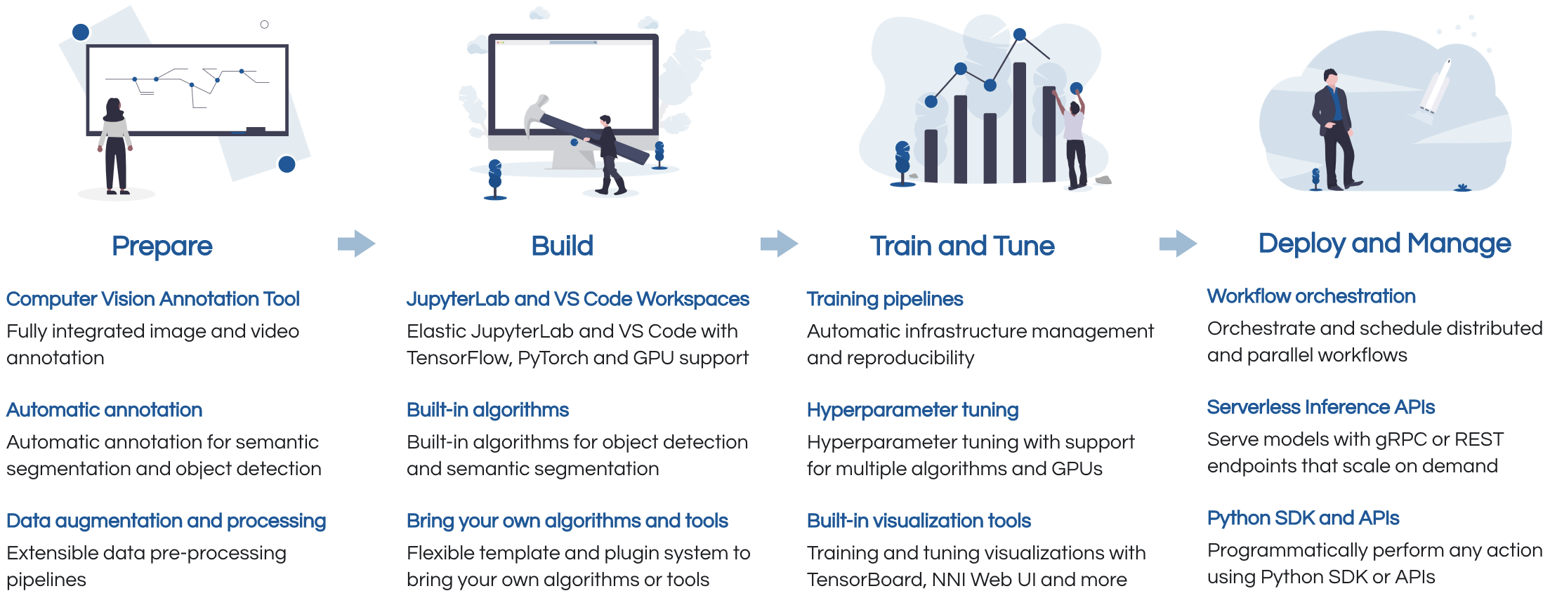 Beschriften, bauen, trainieren, stimmen, einstellen und automatisieren in einer einheitlichen Plattform, die auf jeder Cloud und vor Ort ausgeführt wird.