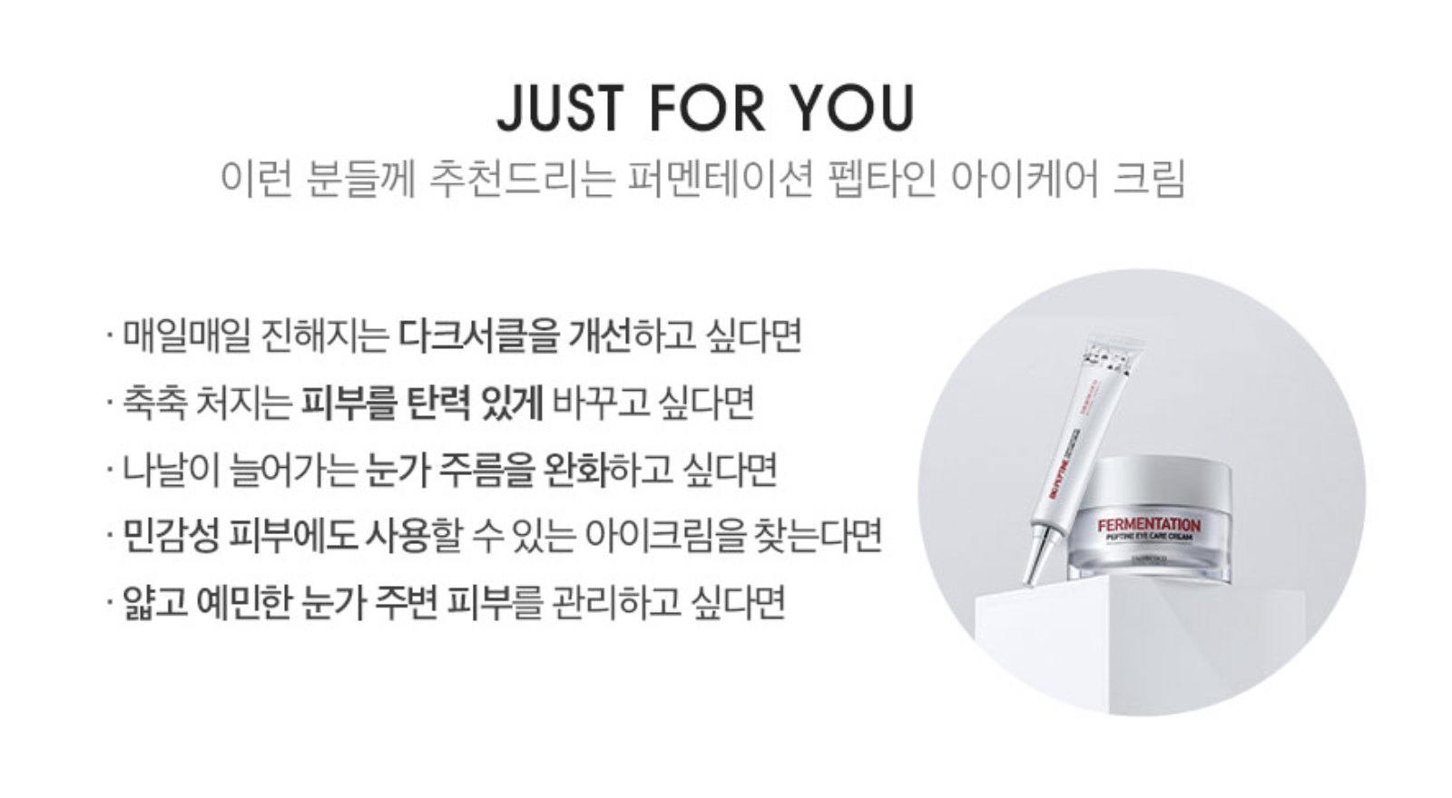 context = "퍼멘테이션 펩타인 아이케어 크림" , # product name