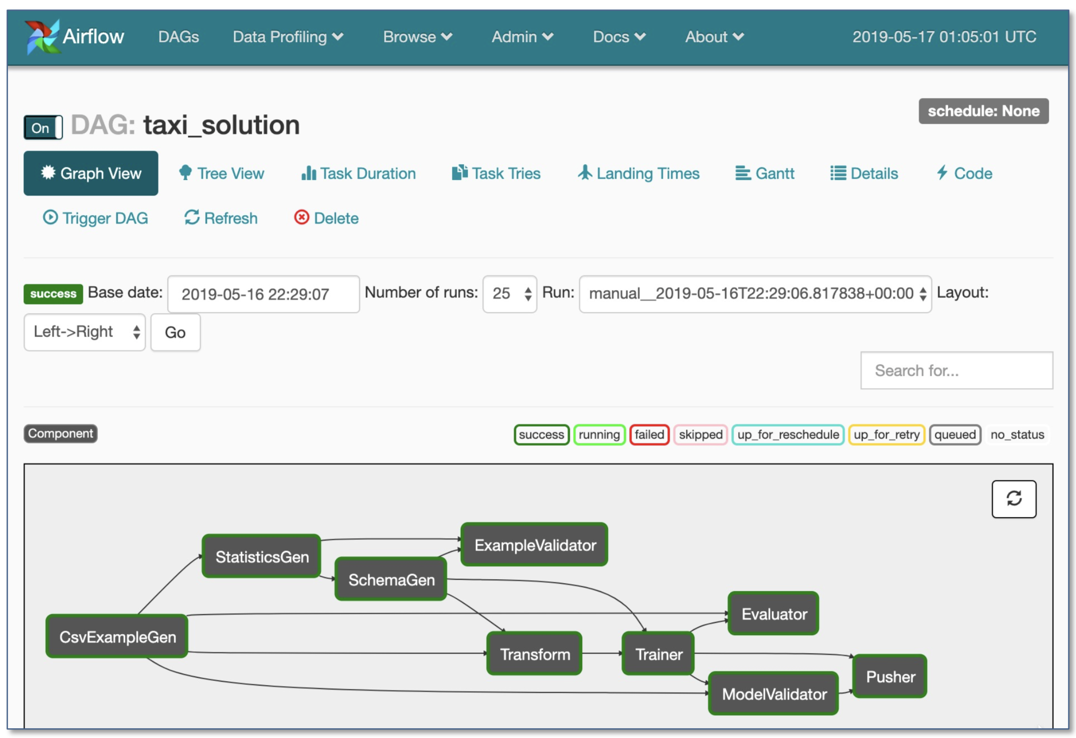 - Es gibt Abhängigkeiten zwischen den Aufgaben, die jeder nach Abschluss seiner Abhängigkeiten abgeschafft werden muss. Das Training mit neuen Protokolldaten erfordert beispielsweise einen Vorverarbeitungsschritt vor dem Training.