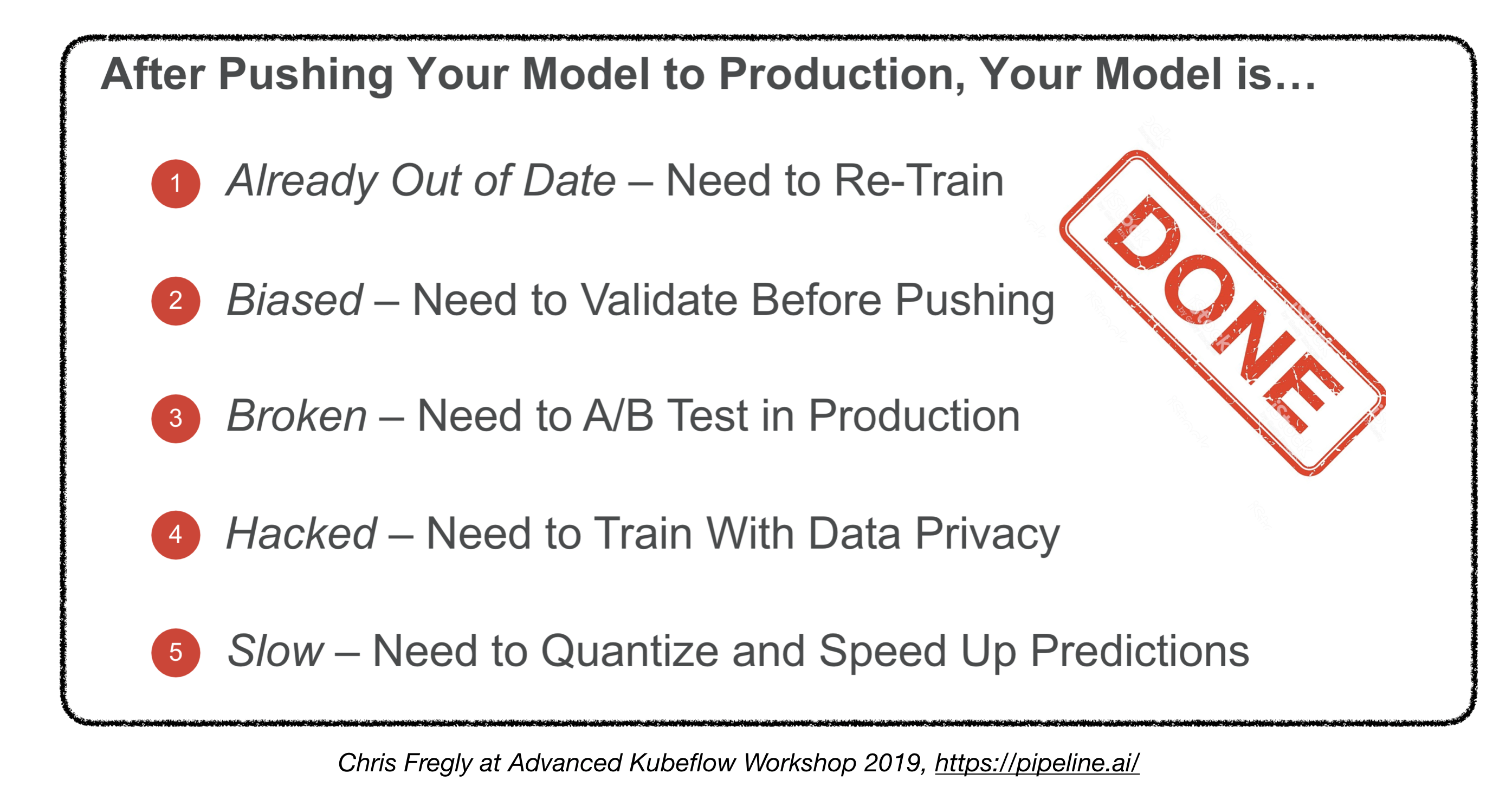 Das hier vorgestellte Material wird aus dem Full Stack Deep Learning Bootcamp (von Pieter Abbeel an der UC Berkeley, Josh Tobin in Openai und Sergey Karayev bei Turnitin), TFX -Workshop von Robert Crowe und Pipeline.ais Advanced Kubeflow Meetup von Chris Fegly entlehnt.