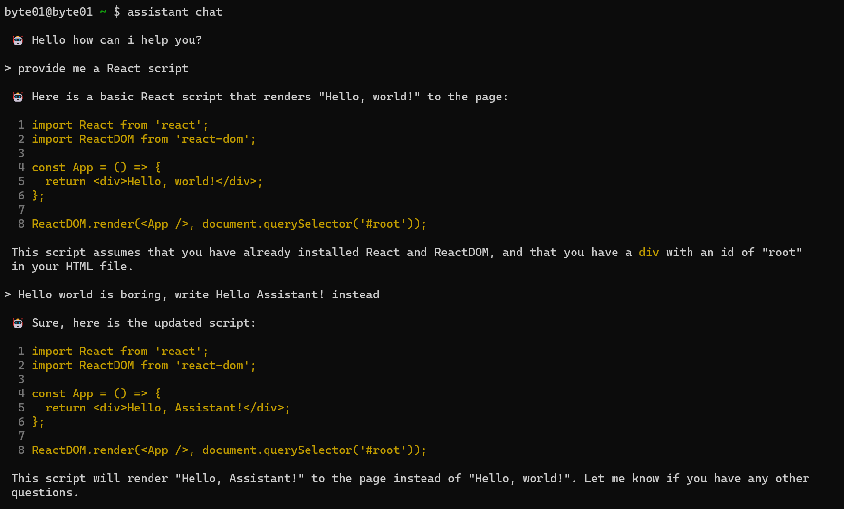npm install -g assistant-cliHinweis gemäß den offiziellen OpenAI Discord am 7. Dezember 2022: Die ChatGPT -Server erfahren derzeit "außergewöhnlich hohe Nachfrage", sodass einige Anfragen möglicherweise mit HTTP 503 -Fehlern reagieren.