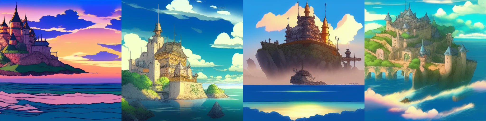 '城堡 大海 夕阳 宫崎骏动画' ,