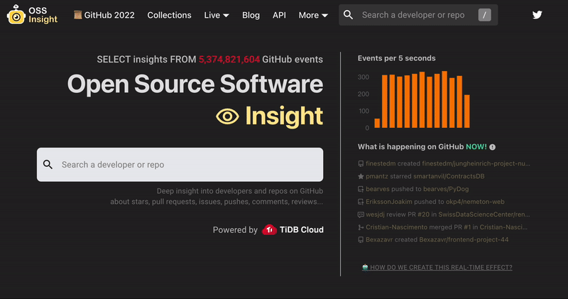 OSS Insight ist ein leistungsstarkes Tool, das umfassende, wertvolle und trendige Erkenntnisse in die Open -Source -Welt bietet, indem 5+ Milliarden Zeilen von GitHub -Ereignisdaten analysiert werden.