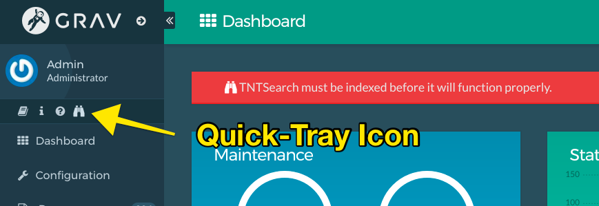 Wenn Sie das Administrator -Plugin verwenden, können Sie Ihren Inhalt direkt über das Plugin indexieren. TNTSearch fügt ein neues Schnell-Tray -Symbol hinzu, mit dem Sie einen neuen Index erstellen oder alle Ihre Inhalte schnell und bequem mit einem einzigen Klick neu indeminieren.