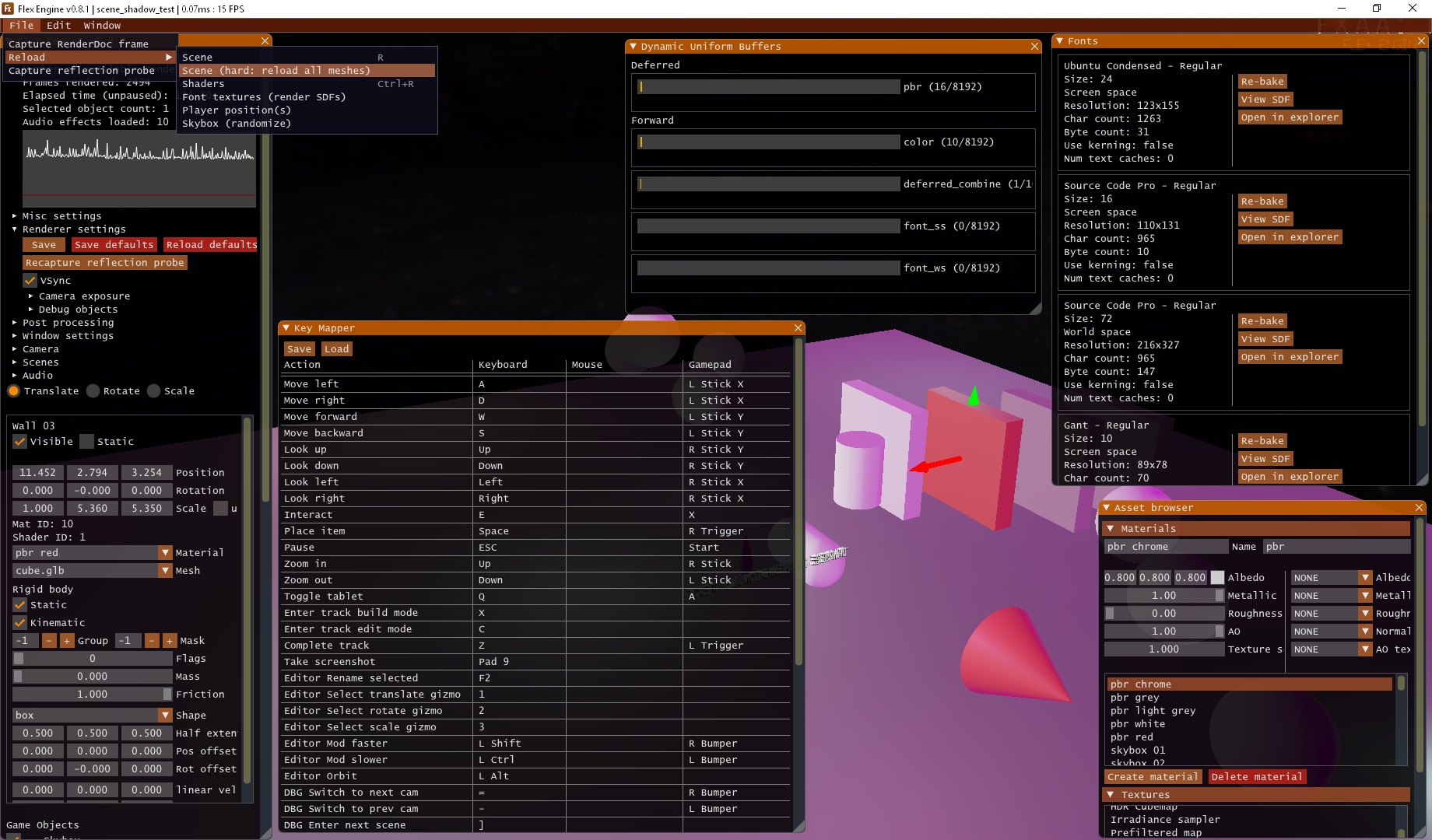 - Überwachung der Dateimodifikation für Texturen, Maschen, Vorbereitungen, Shader, Konfigurationsdateien usw. (Resourcemanager.cpp)