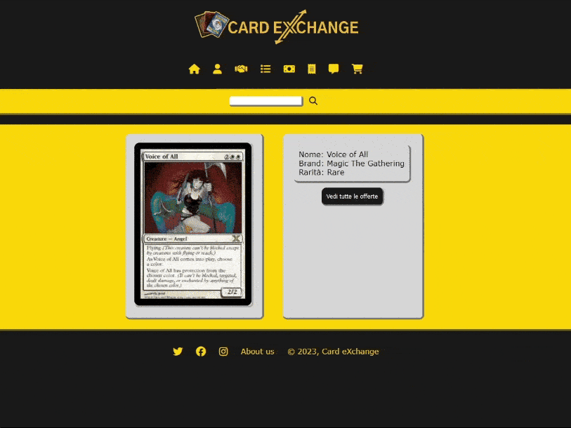 Card Exchange wurde mit dem Ziel entwickelt, die Softwareentwicklung als Team zu beurteilen, mit Hilfe von Tools für die Zusammenarbeit von Unternehmen wie Slack und Trello. Das Projekt umfasste alle Phasen der Wasserfallentwicklungsmethode, von der Anforderungen bis hin zu Tests. Die Webanwendung bietet Benutzern die Möglichkeit, eine breite Palette von Sammelkarten zu erkunden, sie zu kaufen, Bewertungen zu hinterlassen, Karten mit anderen Benutzern zu handeln und an Diskussionen in einem Forum teilzunehmen.