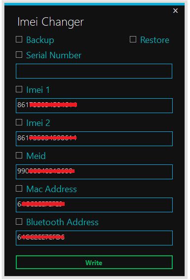 - IMEI Changer, verwendet zum Ändern von Geräten imei.