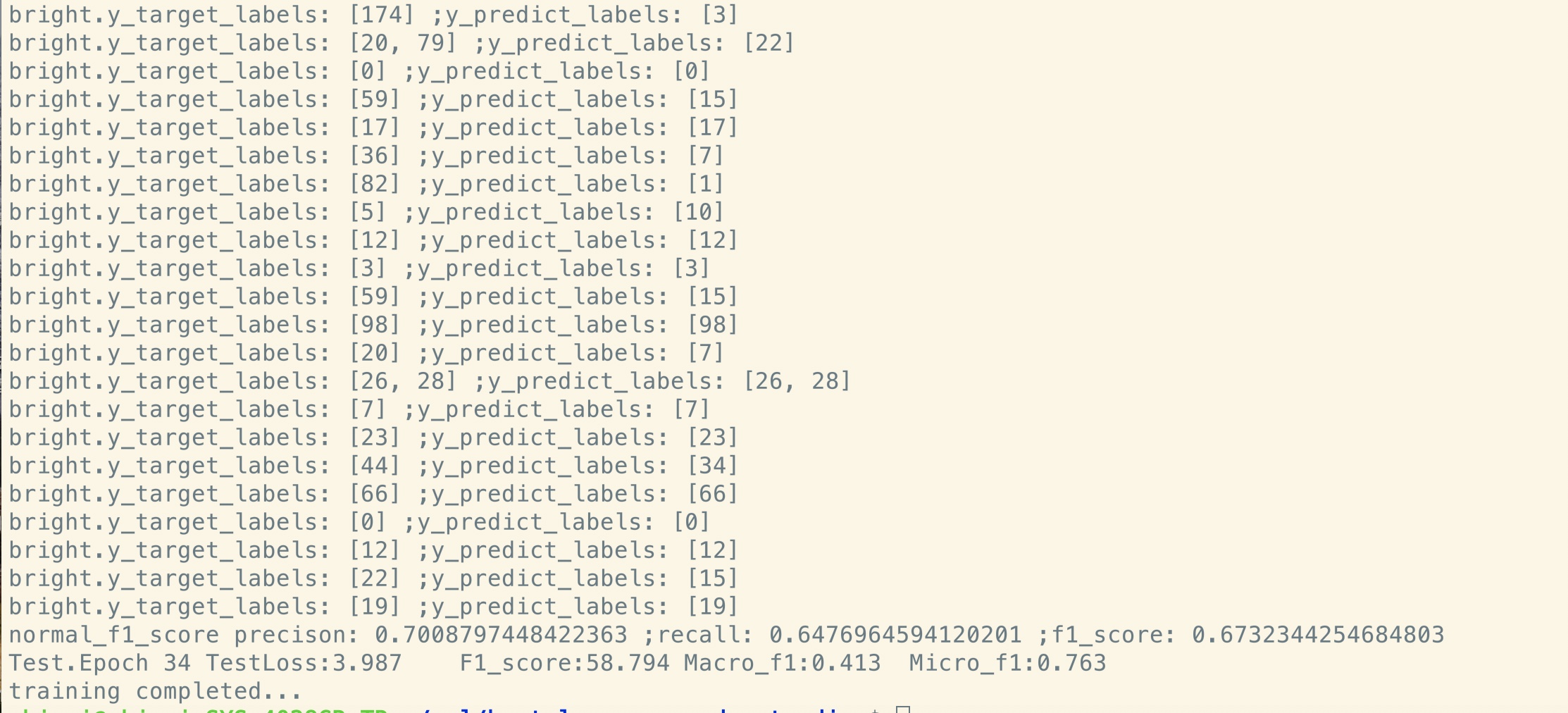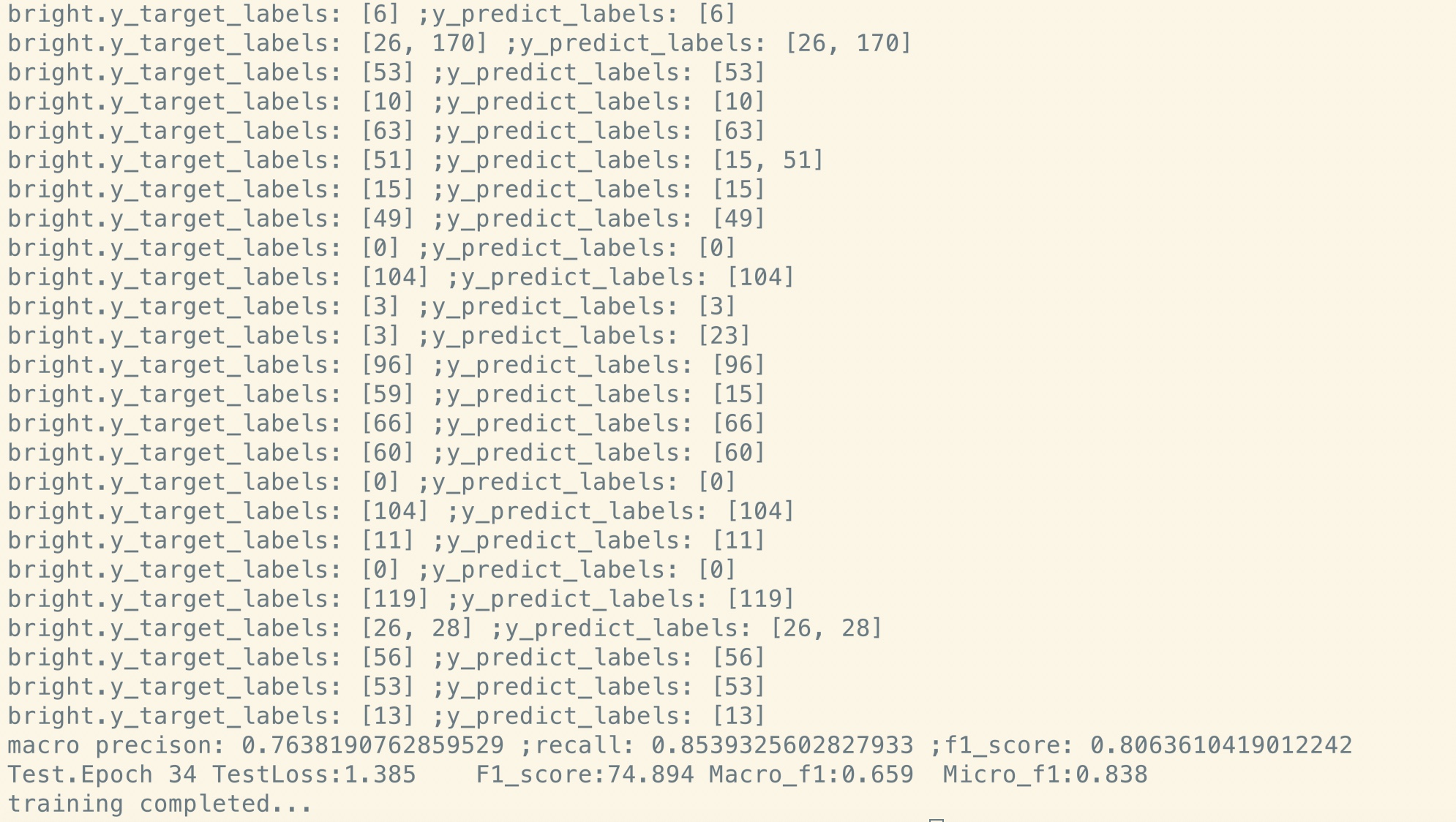 Der hier gemeldete C.F1 -Score befindet sich im Validierungssatz, ein Durchschnitt des Micro- und Makros der F1 -Score.
