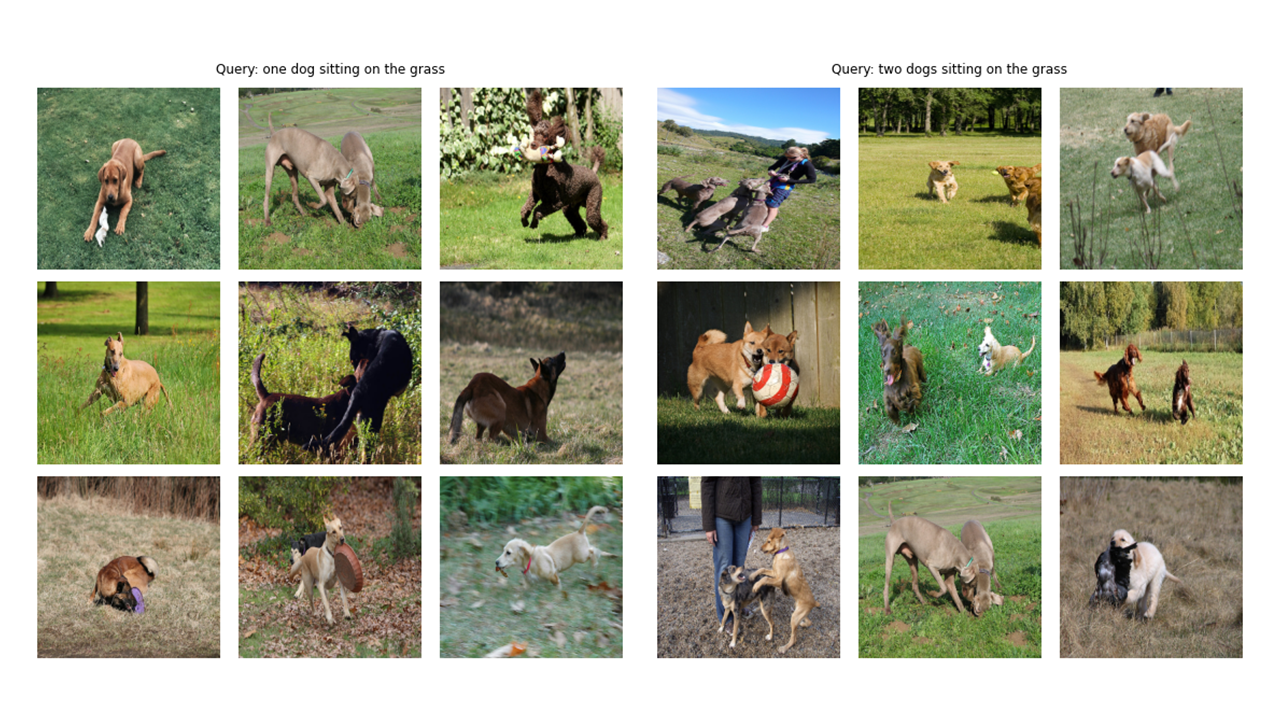 main ()Okay! Wir sind mit dem Training des Modells fertig. Jetzt müssen wir Schlussfolgerung durchführen, die in unserem Fall dem Modell einen Textstück geben und es den relevantesten Bildern aus einem unsichtbaren Validierungssatz (oder Test) abrufen soll.