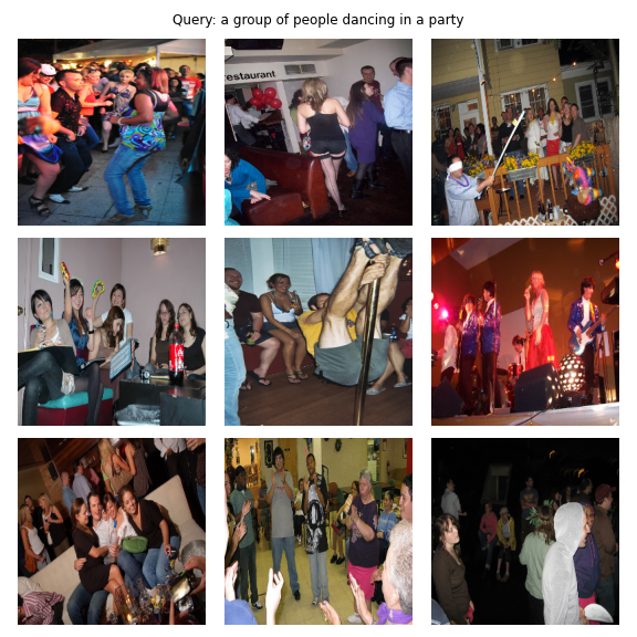 model , image_embeddings = get_image_embeddings ( valid_df , "best.pt" )Diese Funktion erledigt die endgültige Aufgabe, für die wir uns gewünscht haben, unser Modell würde in der Lage sein: Es erhält das Modell, die Image_embeddings und eine Textabfrage. Es wird die relevantesten Bilder aus dem Validierungssatz angezeigt! Ist es nicht unglaublich? Mal sehen, wie es doch funktioniert!