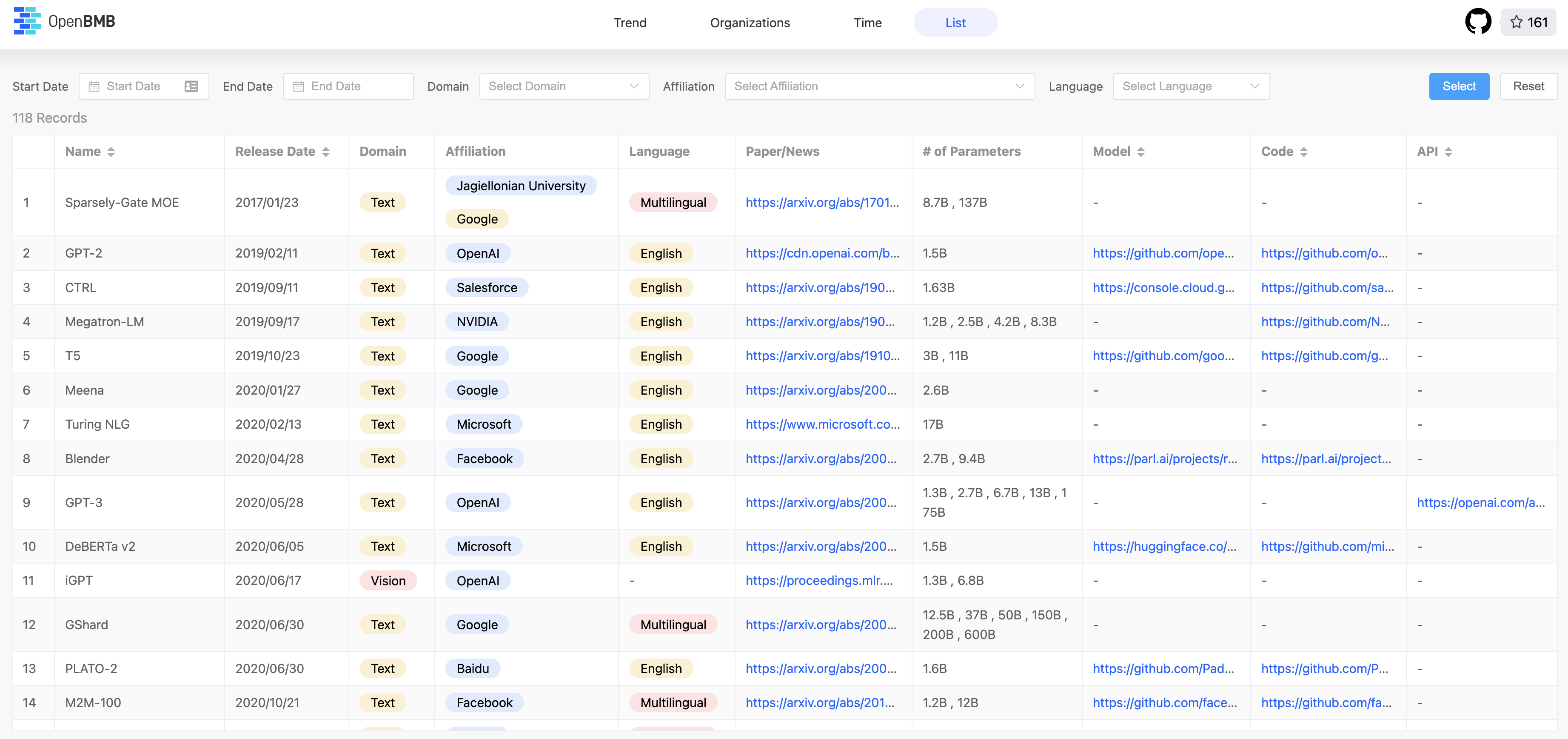 Willkommen bei BMList! Wir möchten diese Liste verwenden, um den jüngsten Trend großer Modelle anzuzeigen.
