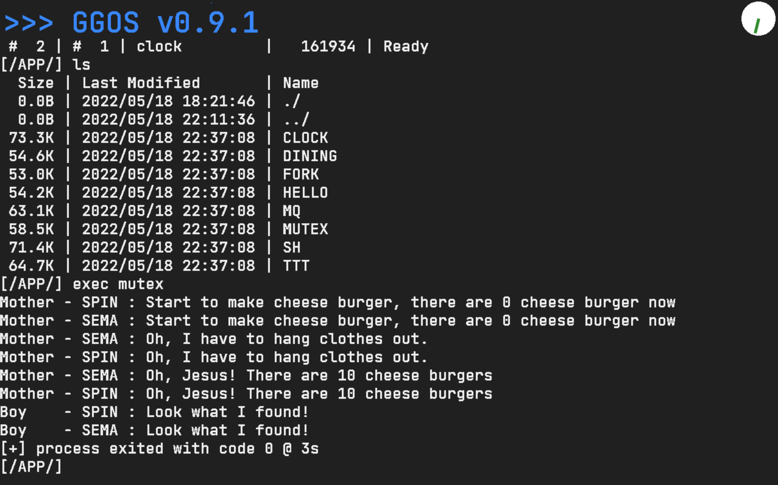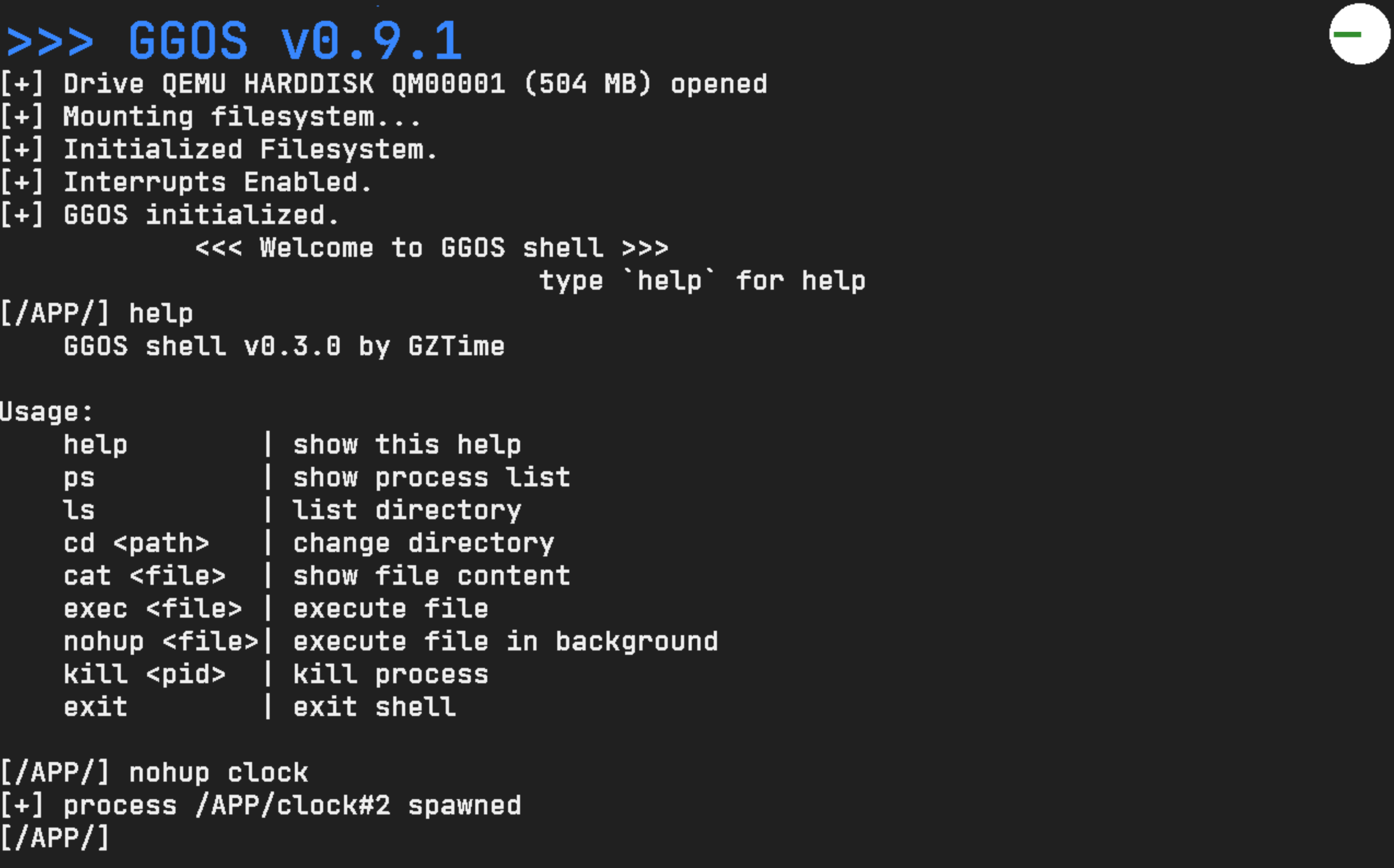 Oder Sie können mit python ggos.py run um das Betriebssystem unter Windows / Linux / MacOS mit qemu und rost -Toolchain installiert zu starten.