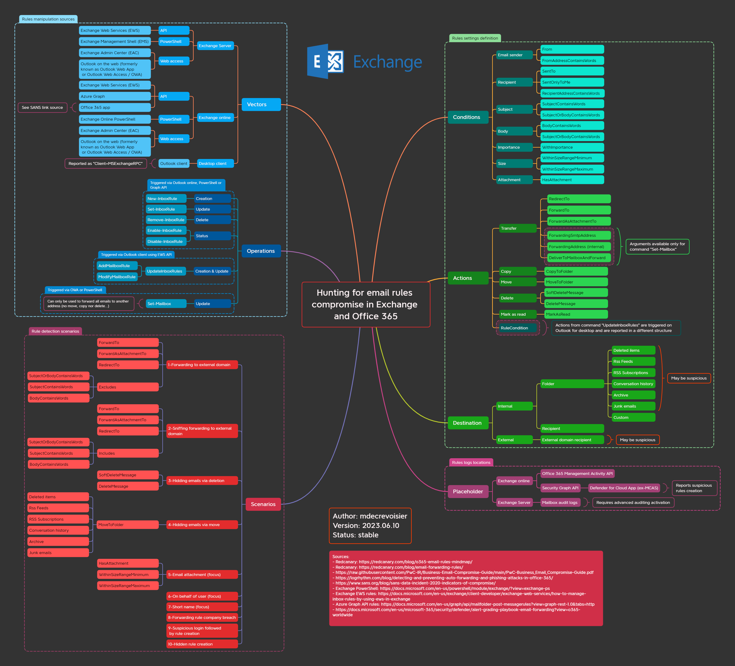 Diese Karte bietet einen Überblick über die verschiedenen Jagdkapazitäten in Bezug auf den Austausch -E -Mail -Kompromissregeln, die bei BEC -Angriffen missbraucht wurden.