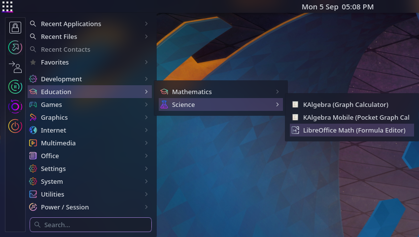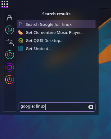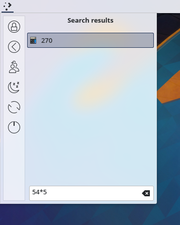 Die Suchleiste verwendet Plasma Search , die derselbe Suchanbieter ist, der in Krunner, dem Kickoff -Anwendungslauncher verwendet wird, und der Übersichtseffekt, der leistungsstarke Such -Plugins und -anbieter unterstützt.