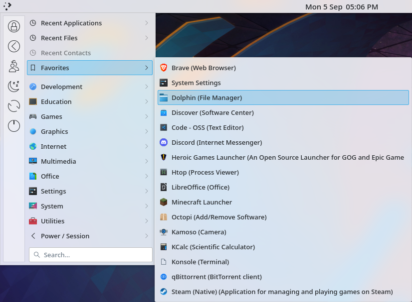 Eine verbesserte Gabelung des Kicker -Anwendungsmenüs von KDE Plasma