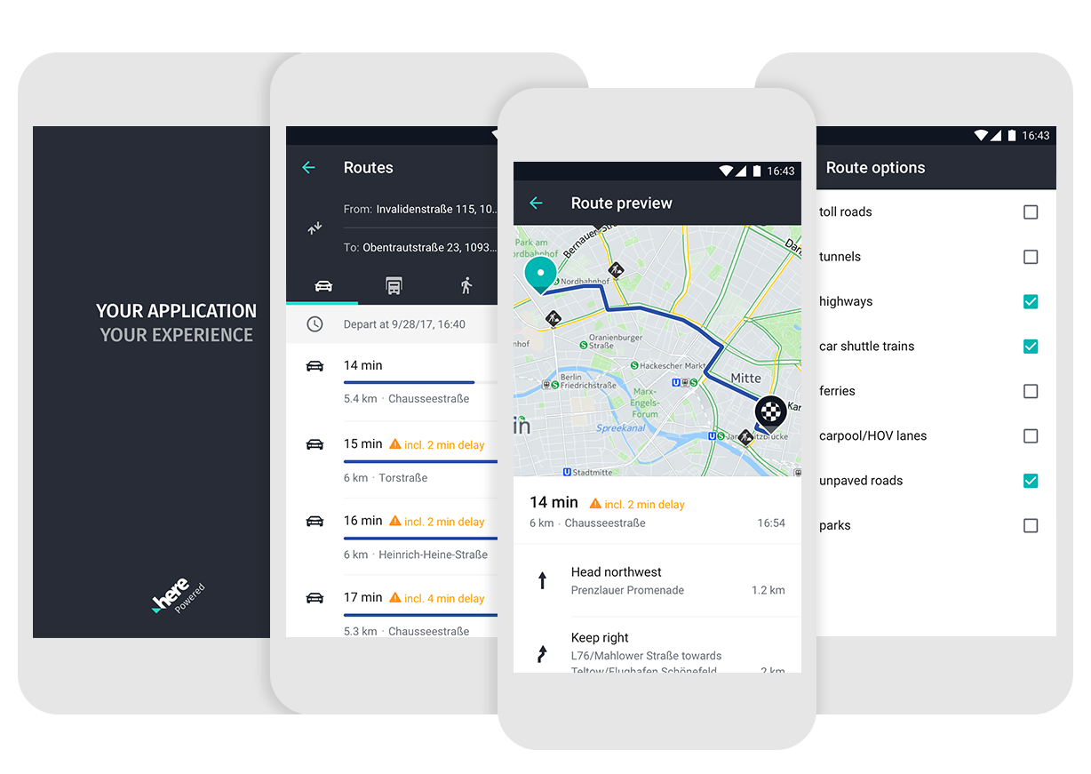 Bauen Sie innerhalb von Minuten schnell schöne Benutzeroberflächen für gemeinsame Anwendungsfälle und Szenarien auf. Version 2.x des Here Mobile SDK UI Kit (MSDKUI) konzentriert sich hauptsächlich auf Routenplanung, Manöverdetails und Anleitungen. Weitere Komponenten folgen anschließend mit den nächsten Veröffentlichungen.