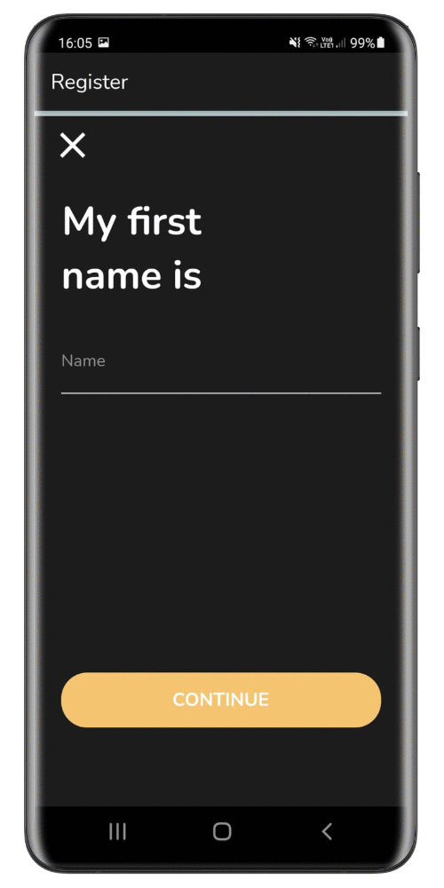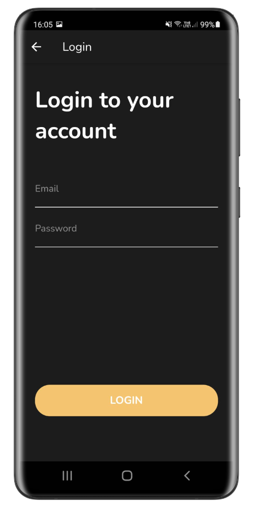 Startbildschirm: Login/Register