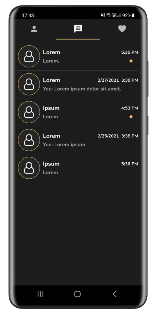 CHATS -Bildschirm: Liste der Chats (Übereinstimmungen)