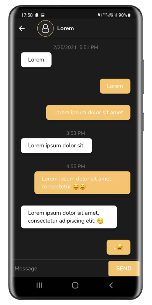 CHAT -Bildschirm: Messagierte sortiert nach Zeitstempel, senden und anzeigen Nachrichten