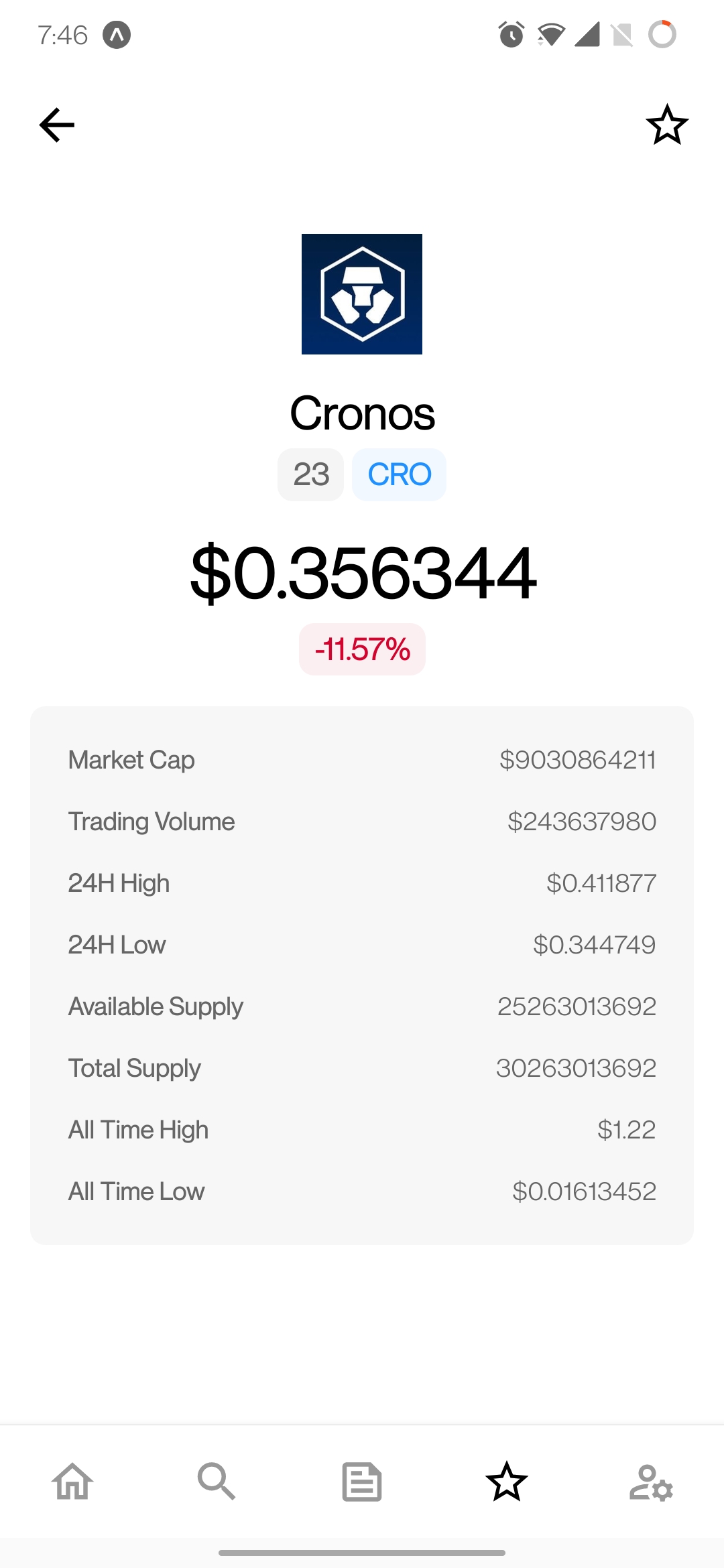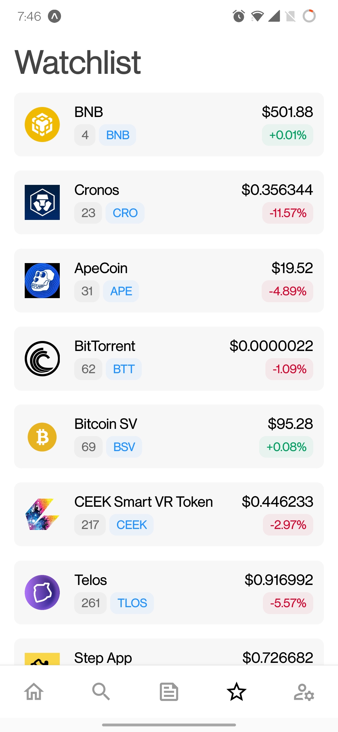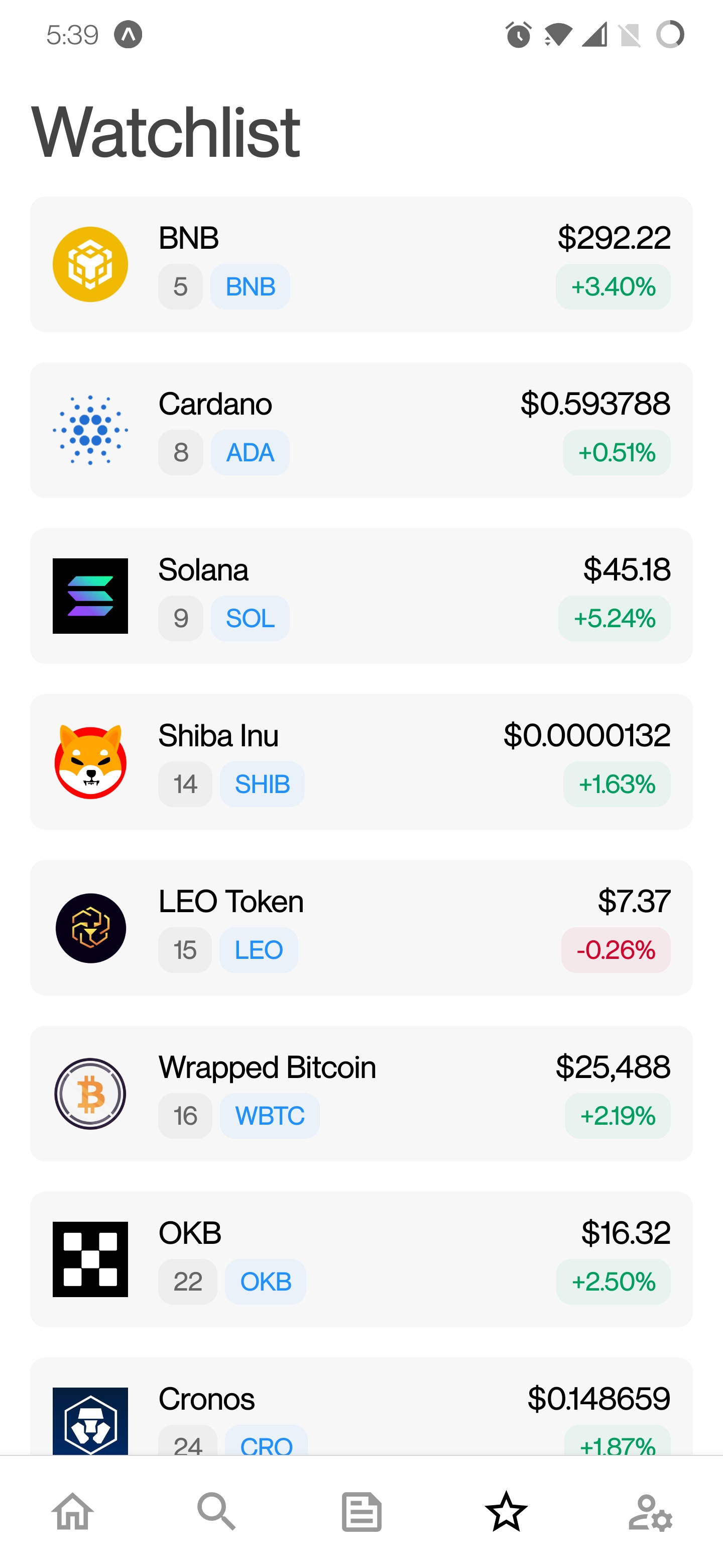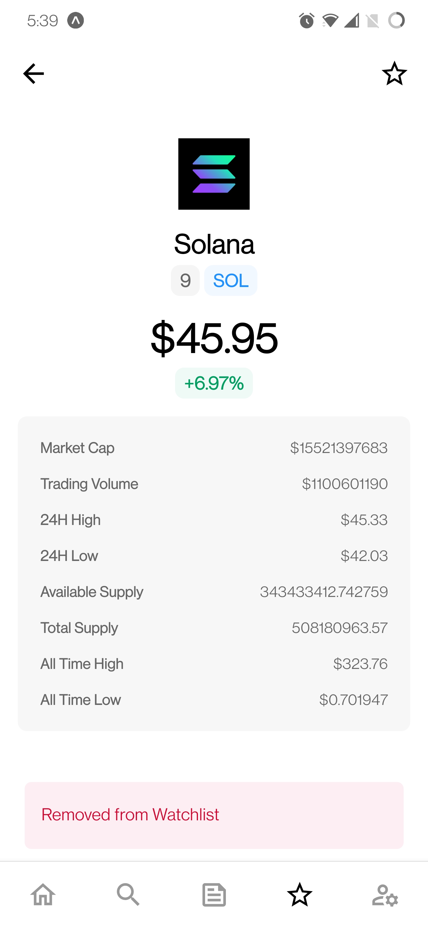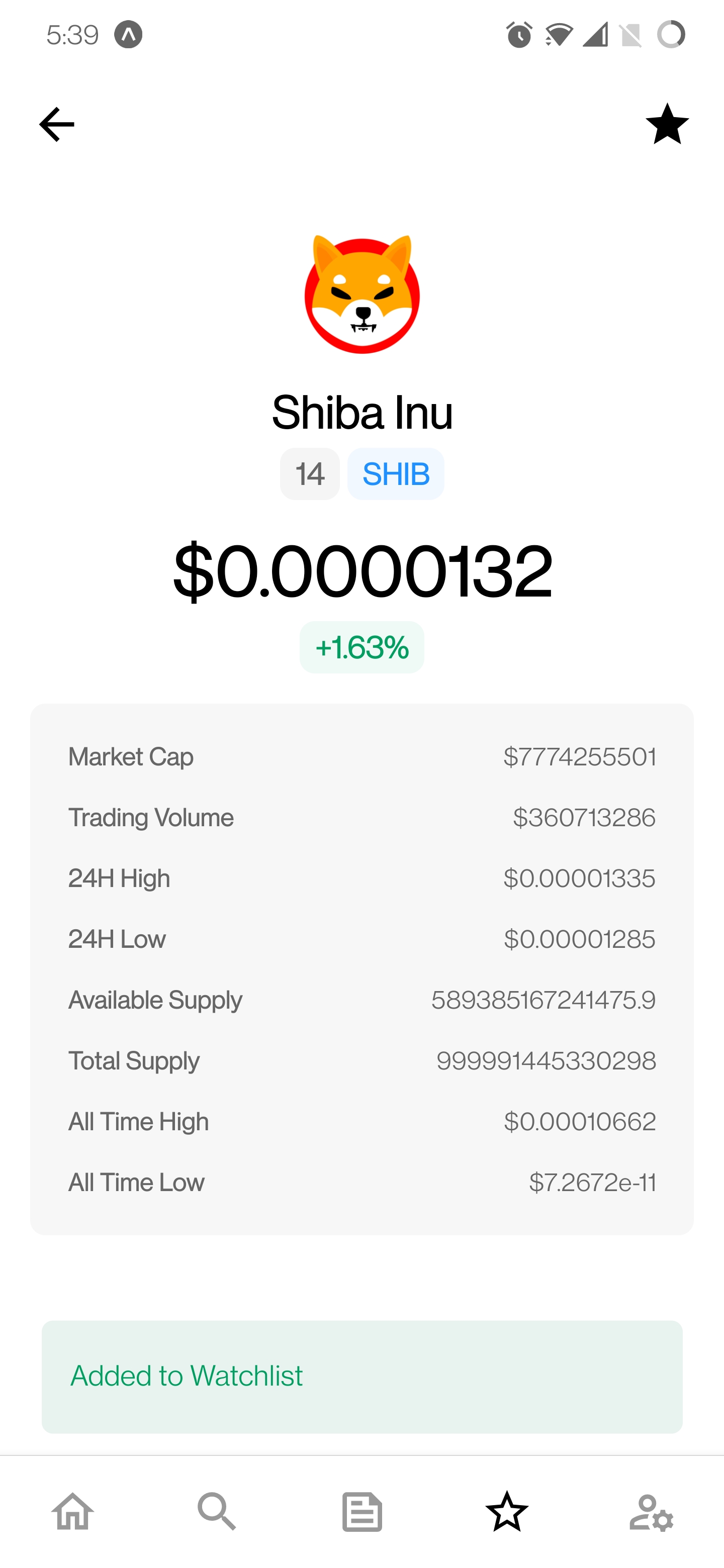 must be logged in um auf diese Funktion zuzugreifen. - Auf dem Bildschirm der Münzdetails ist ein Watchlist -Symbol vorhanden, um eine Münze schnell aus der Beobachtungsliste hinzuzufügen/zu entfernen.