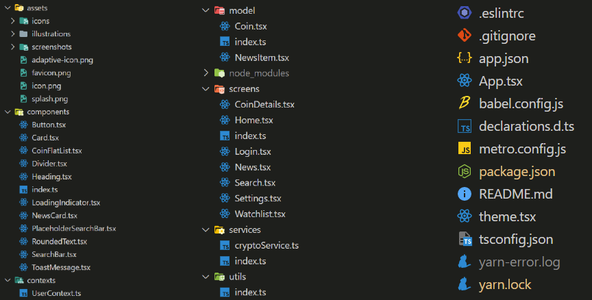 - Das Projekt folgt der empfohlenen React Native Architecture, die einfach und leicht verständlich ist.