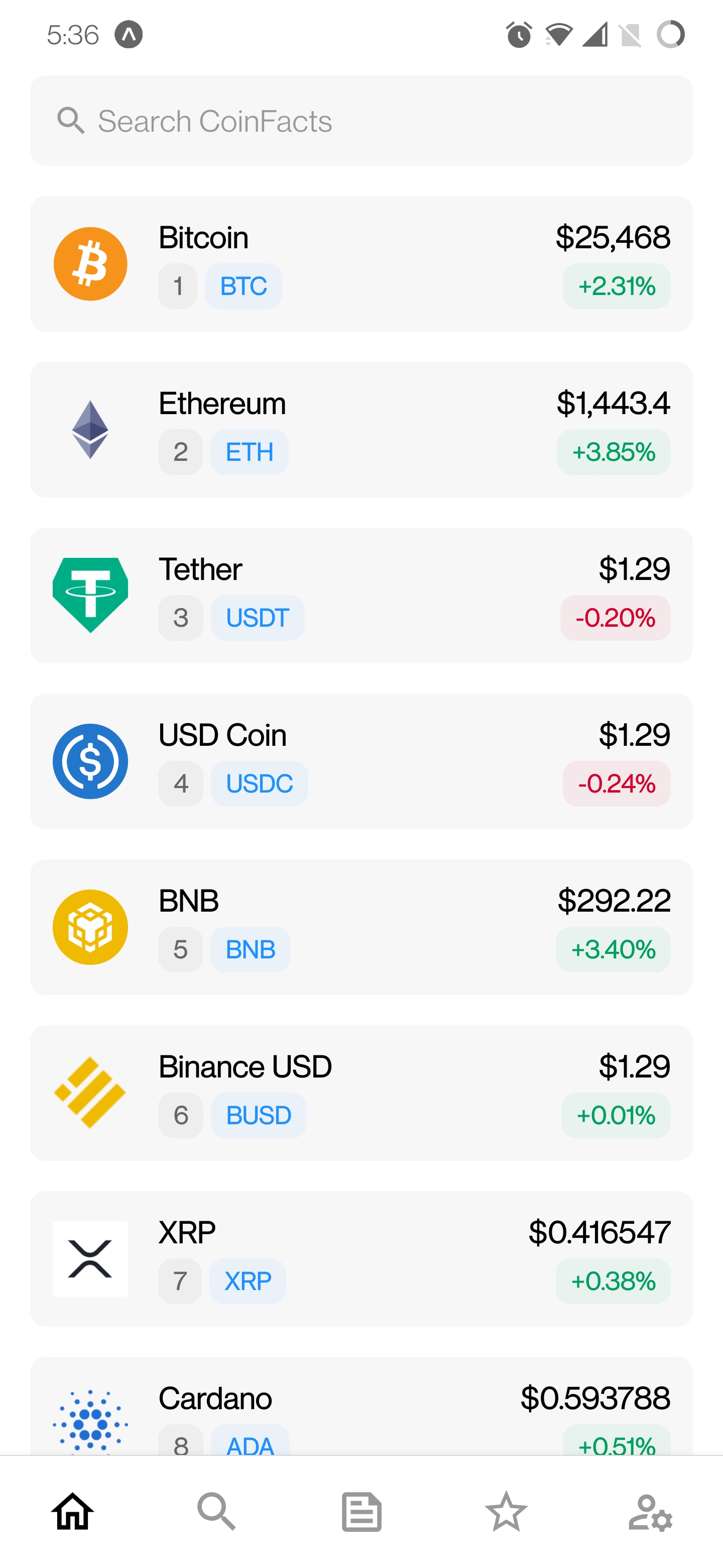 Coinfacts ist eine featurereichen Kryptowährungs-Tracking-App für Android und iOS, die mit React Native entwickelt wurden.