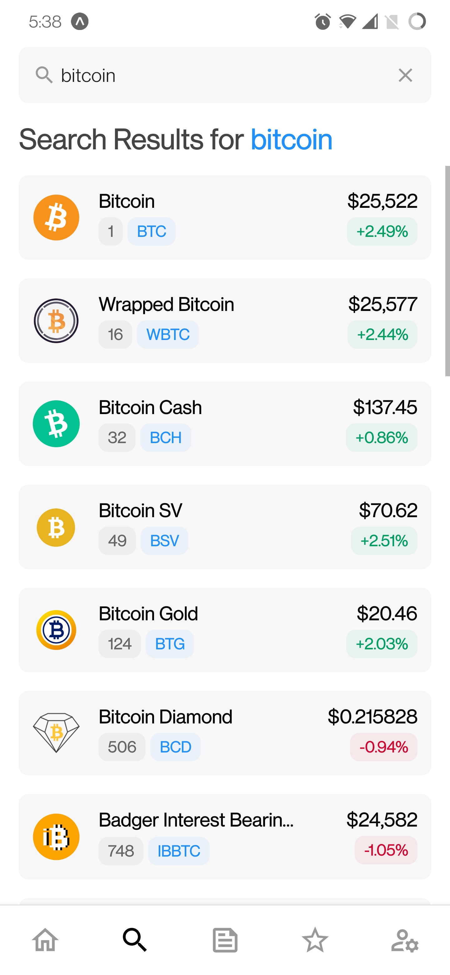 SearchBar kann verwendet werden, um nach einer Münze nach ihrem Namen zu suchen.