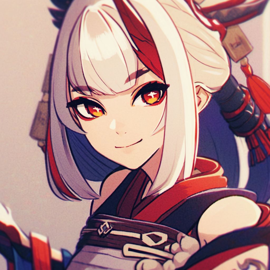 Stray dog::3, samurai::5, katana::5, dirt road::3, countryside::3, --niji --q 2