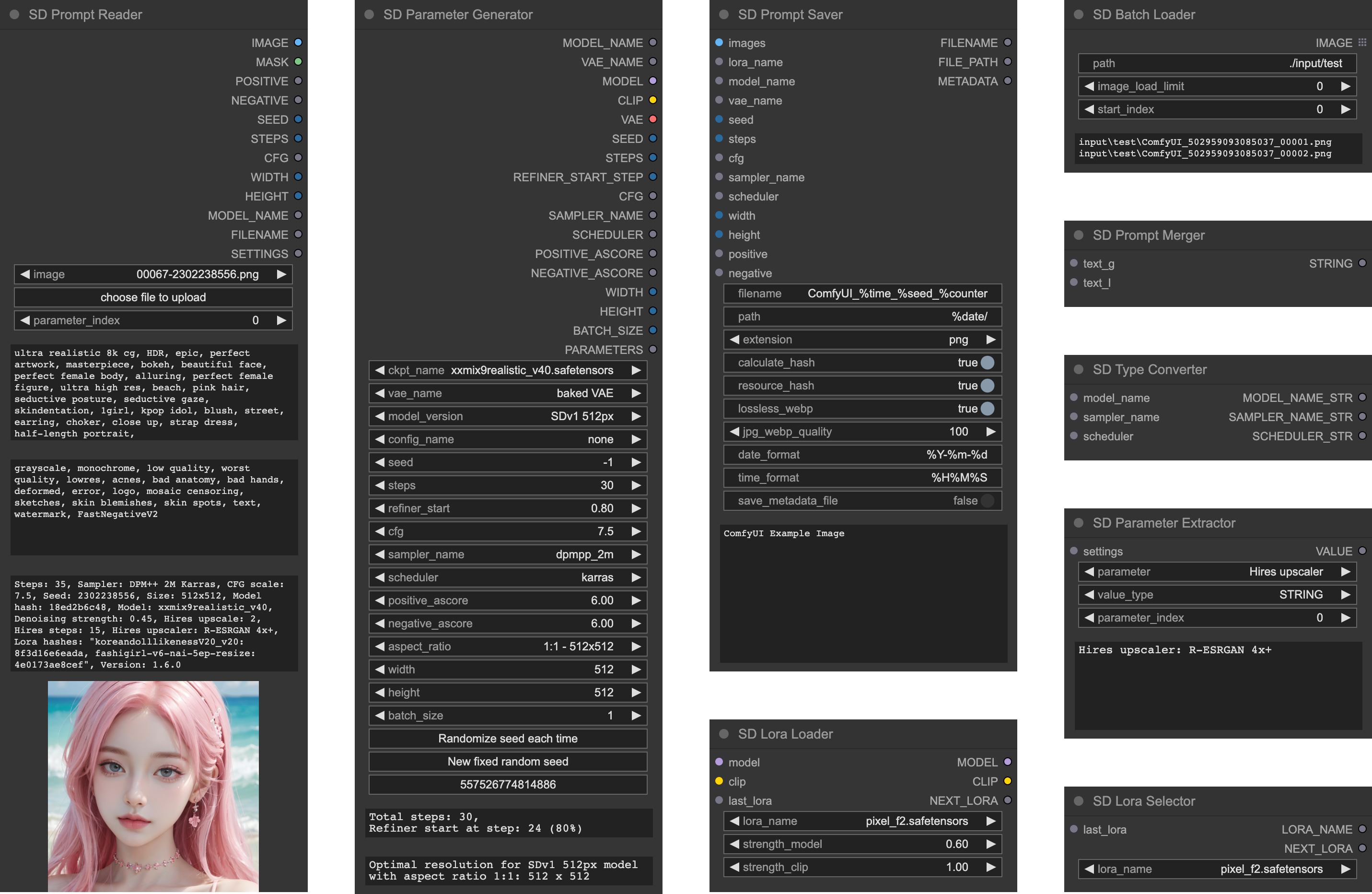 Prompt Saver -Sparknoten und der Parameter Generator sind so ausgelegt, dass sie zusammen verwendet werden.Prompt Saver schreibt zusätzliche Metadaten im A1111 -Format in die Ausgabebilder, die mit allen Tools kompatibel sind, die das A1111 -Format unterstützen, einschließlich SD -Eingabeaufforderung und Civitai.Tipp